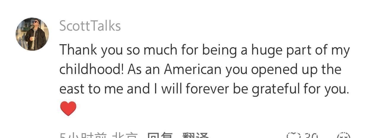 “相配感谢你成为我童年的蹙迫一部分!算作一个好意思国东说念主,你为我翻开了东方的大门,我将长期感恩你。”成龙年老真的影响了太多东说念主,让异邦的网友爱上中国。