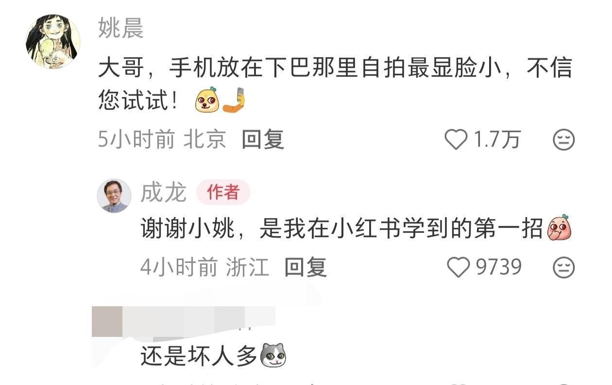 姚晨显然“凌暴”成龙年老这个老年东说念主,“年老,手机放不才巴那处自拍最显脸小,您试试”。成龙年老没能看穿姚晨的“鬼见识”,还讲演说念“谢谢小姚,这是我来这儿学到的第一招。”