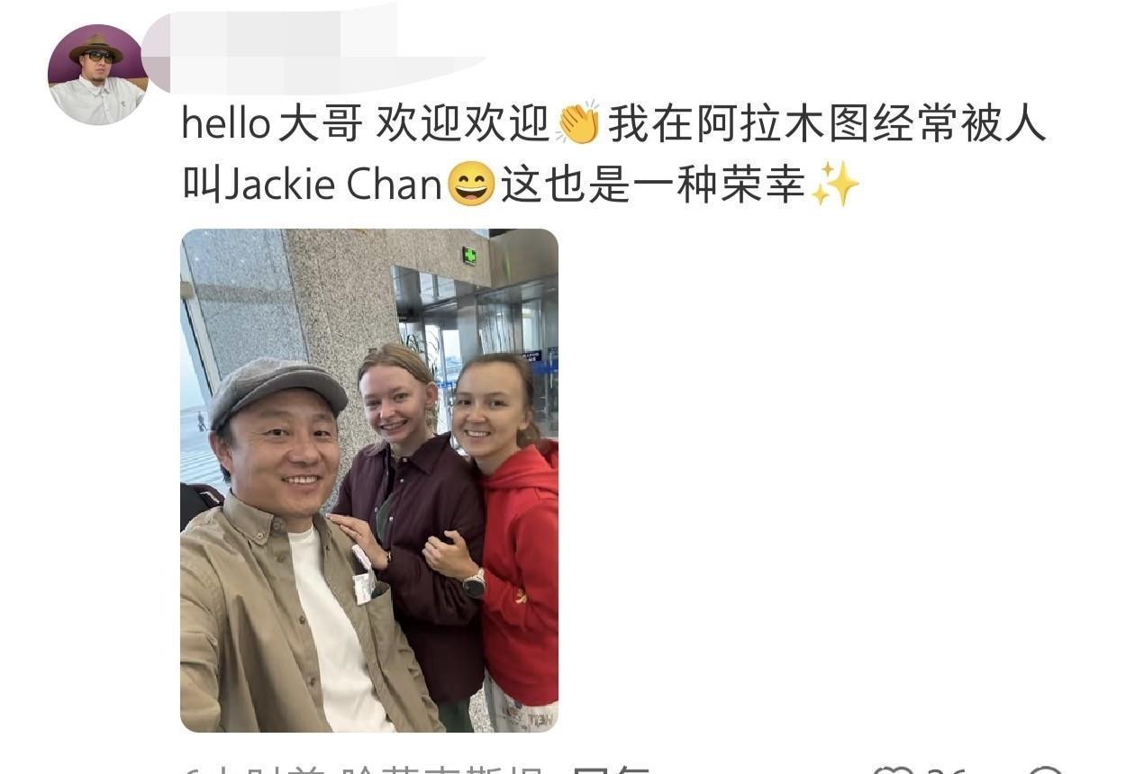 来自哈萨克斯坦的网友暗示能被东说念主叫作念“Jackie Chan”,是他的荣幸。