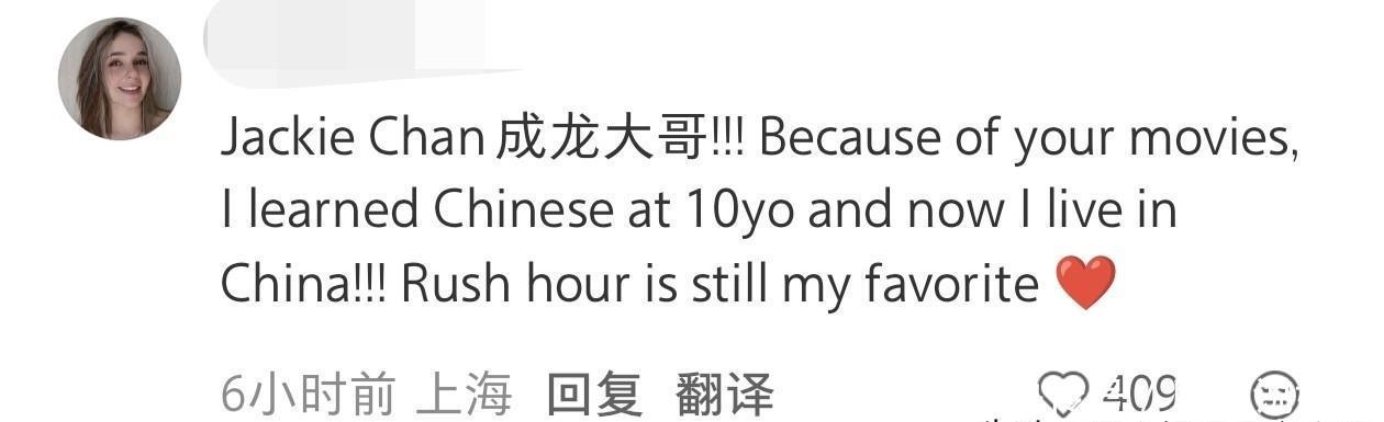 挑剔区各个国度的网友都吻上来了,成龙的海外影响力太强。这位异邦小小姐因为成龙年老的电影来到中国,学习了10年汉文,咫尺在上海假寓了。