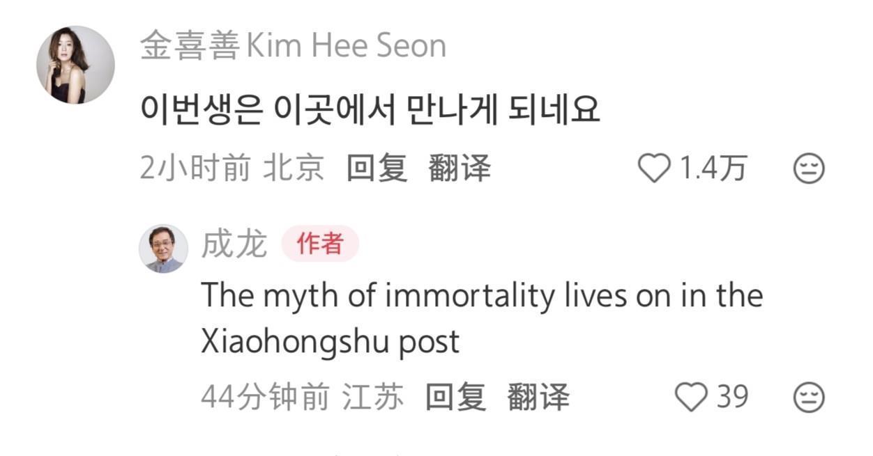 金喜善亦然坐窝赶来挑剔“此次的相遇是在这里了呢”。成龙讲演“永恒的传闻在这里无间。”真实梦境联动,这样多年了,随即去重温两东说念主的电影《传闻》。